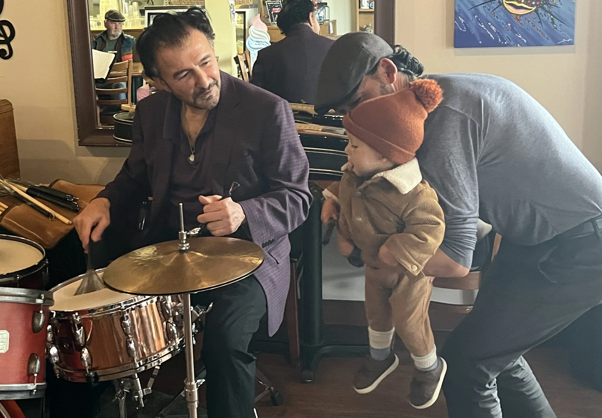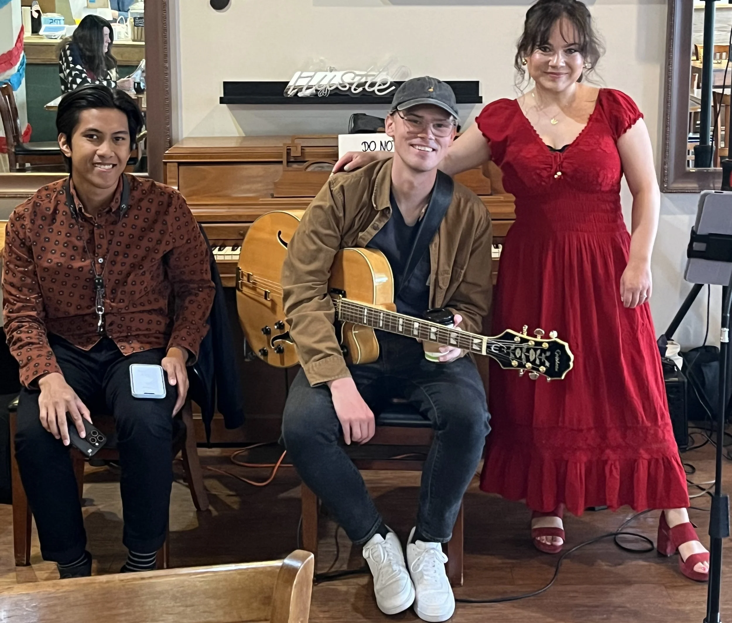 Fall 2024 - we’re already gaining traction as a venue, so I call a piano tech to work on Gloria 1. Chris Cochran (www.christopherpiano.com) shows up and does what he could with a student upright. He asks about what we’re doing, hears our story and says “What you’re doing is great - I’ve got to get you a better piano!”). So he does! A few months later he delivers us Gloria 2, a Kimball Baby Grand he obtained from the Gloria Academy of Music up in Silicon Valley, and which started us officially nicknaming our pianos Gloria! Thank you Chris!! (Gloria 1 was claimed by one of my baristas so got a good home!)