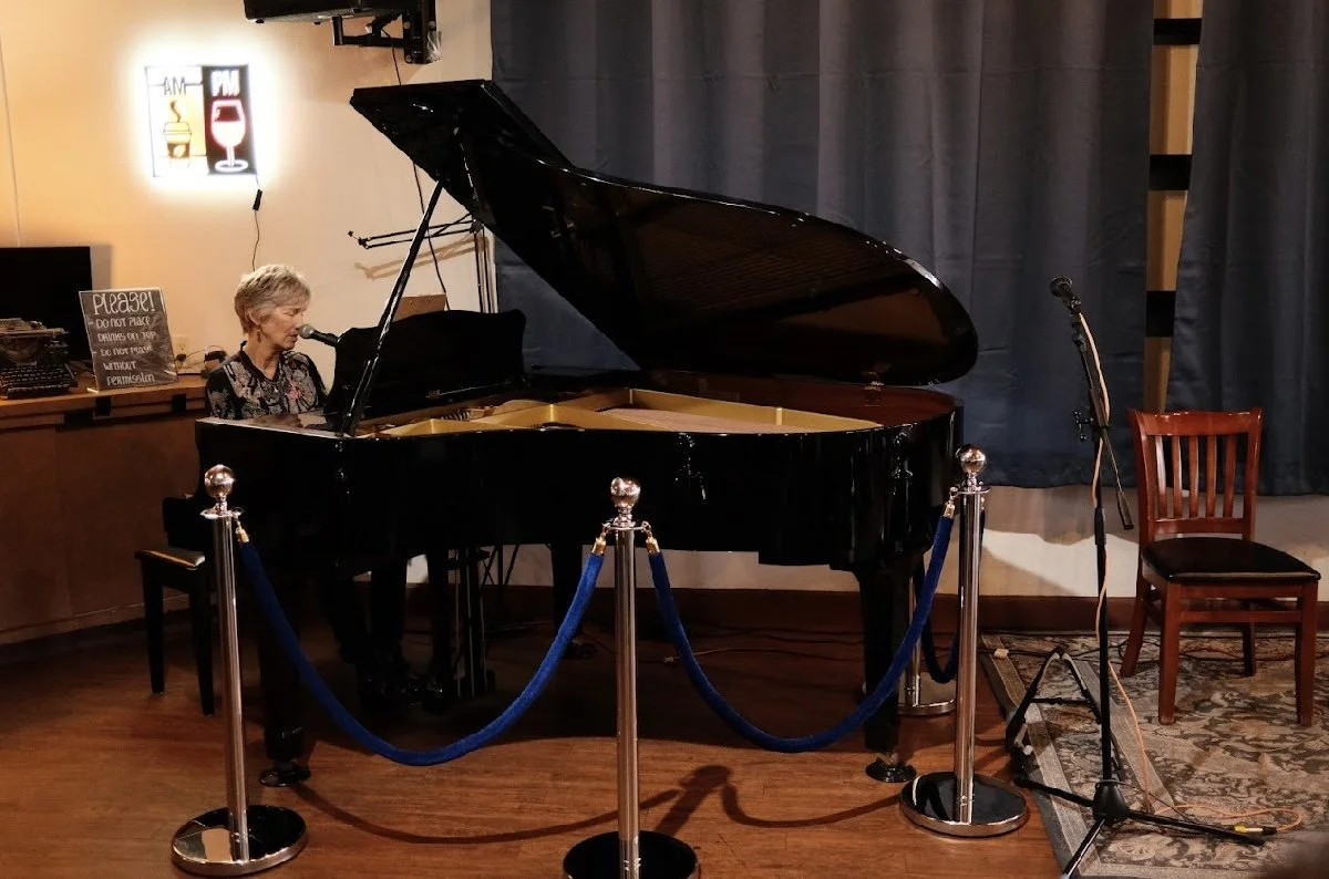 Fall 2024 - we’re already gaining traction as a venue, so I call a piano tech to work on Gloria 1. Chris Cochran (www.christopherpiano.com) shows up and does what he could with a student upright. He asks about what we’re doing, hears our story and says “What you’re doing is great - I’ve got to get you a better piano!”). So he does! A few months later he delivers us Gloria 2, a Kimball Baby Grand he obtained from the Gloria Academy of Music up in Silicon Valley, and which started us officially nicknaming our pianos Gloria! Thank you Chris!! (Gloria 1 was claimed by one of my baristas so got a good home!)